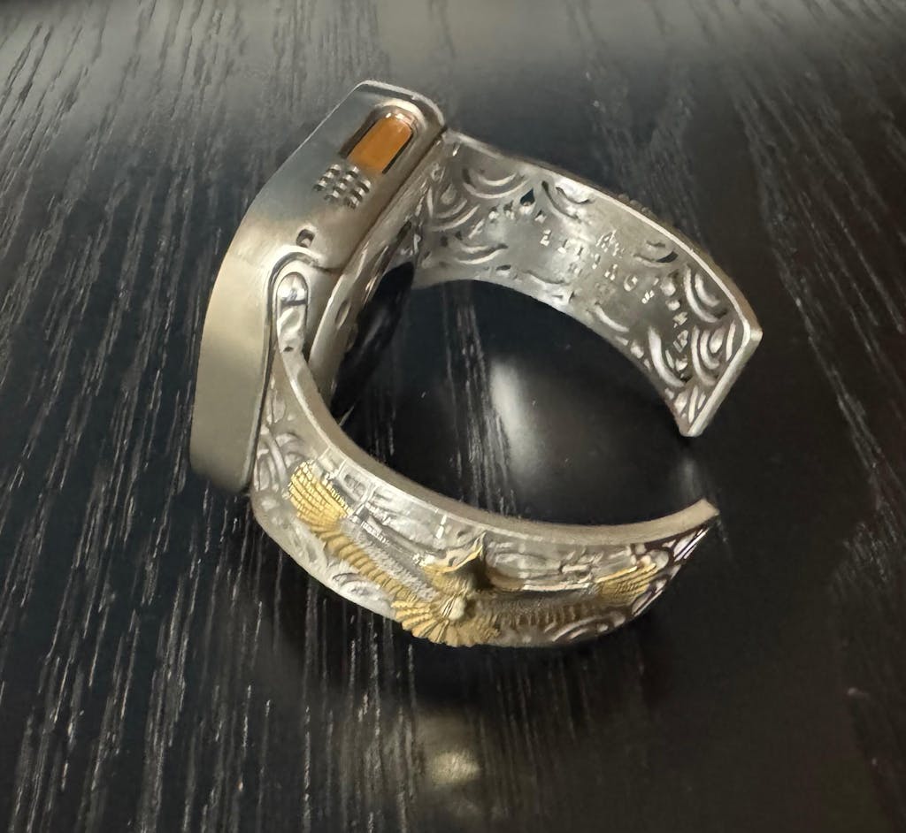 ネイティブアメリカンの信仰において、鷲は天上と最も近しい聖なる鳥とされてきました。雲の上を悠然と舞う鷲の姿に込められた勇気・知恵・強さ。EAGLE CLOUD SUPREMEは、ゴールド×シルバーの気品ある配色で、天空の覇者の存在感を余すことなく表現した一作です。