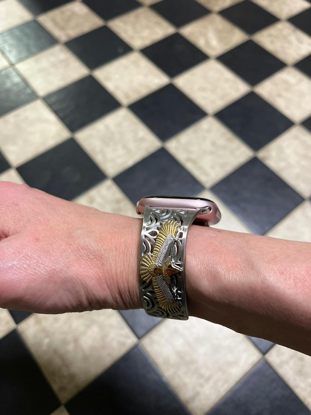 40/41/42mmのApple Watchで、ご希望のバングルサイズがない場合は、[サイズアジャスターケース]をご利用いただくことで44/45mm用バングルの装着が可能です。