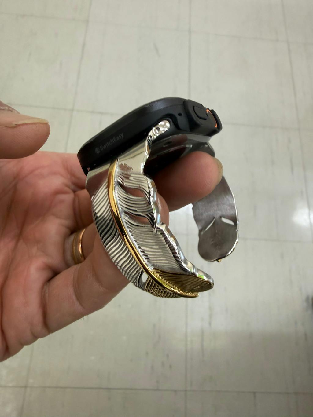 40/41/42mmのApple Watchで、ご希望のバングルサイズがない場合は、[サイズアジャスターケース]をご利用いただくことで44/45mm用バングルの装着が可能です。